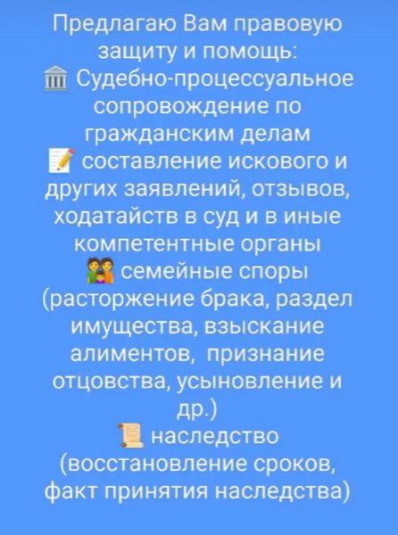 *Правовая помощь, в том числе по вопросам: наследства, земельного права, семейного права, ДТП и др.