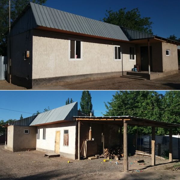 Три комнаты, евро-ремонт, имеется санузел, душевая, холодная и горячая вода, частично мебелированная, отдельная топка, склад, баня, навес, участок 13.25 соток, абрикосовый сад поливается с арыка, недалеко от русской школы, рядом магазины, мечеть.